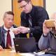 Stan Moore, Osakis School technology integrationist, at center, shows School Board members Mike Collins (left) and Greg Faber how to install and use Google Cardboard on their smartphones. The touchscreen Chromebooks and iPads on the desk were also ...