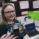 Lauren Bryant, an 8th grader at Stuarts Draft Middle School, shows her robotics entry, "Secure-a-Snack," during the third annual Augusta County Middle School STEM Expo at the Augusta Expo Event Center in Fishersville on Tuesday. Lauren won first place ...